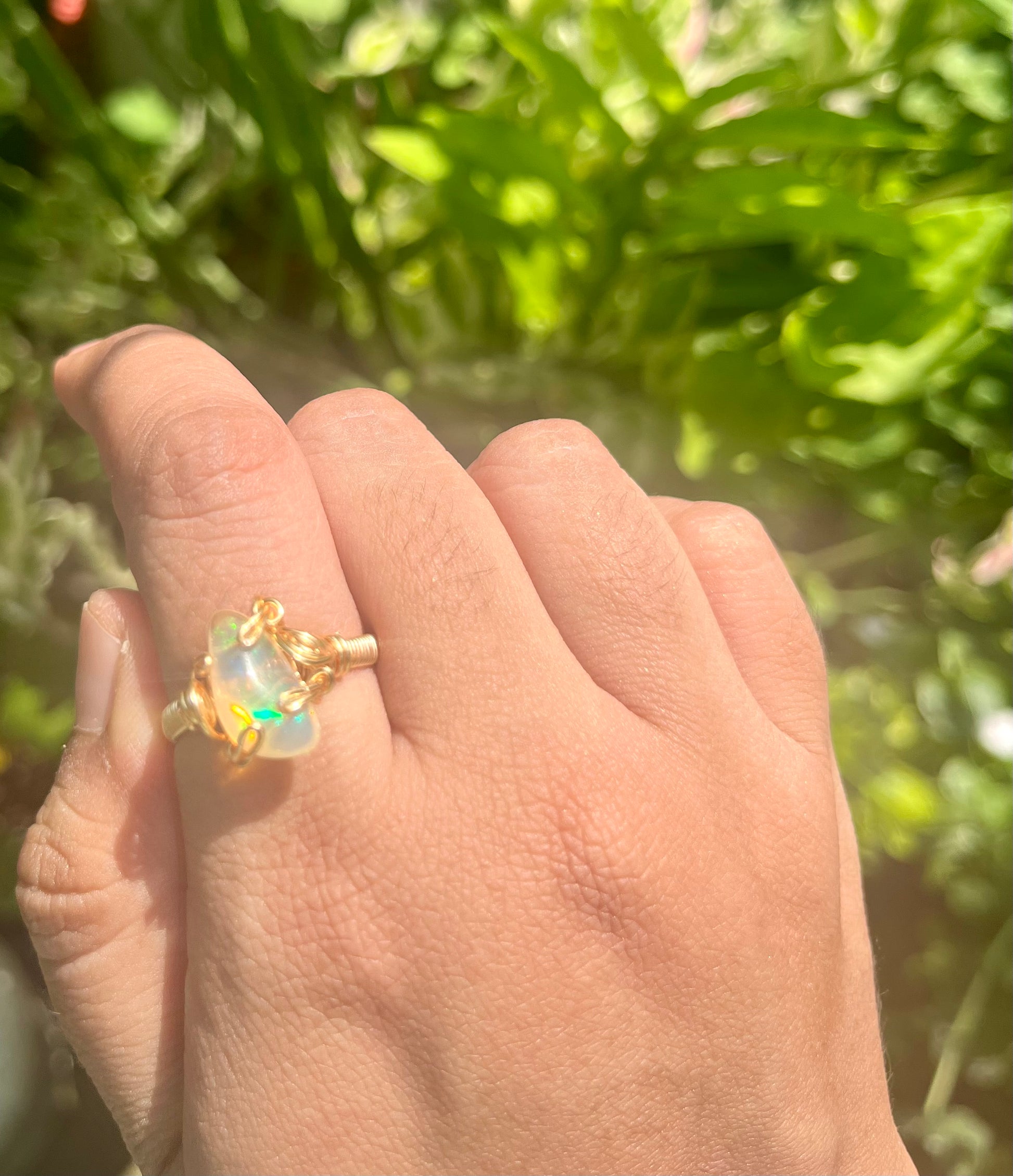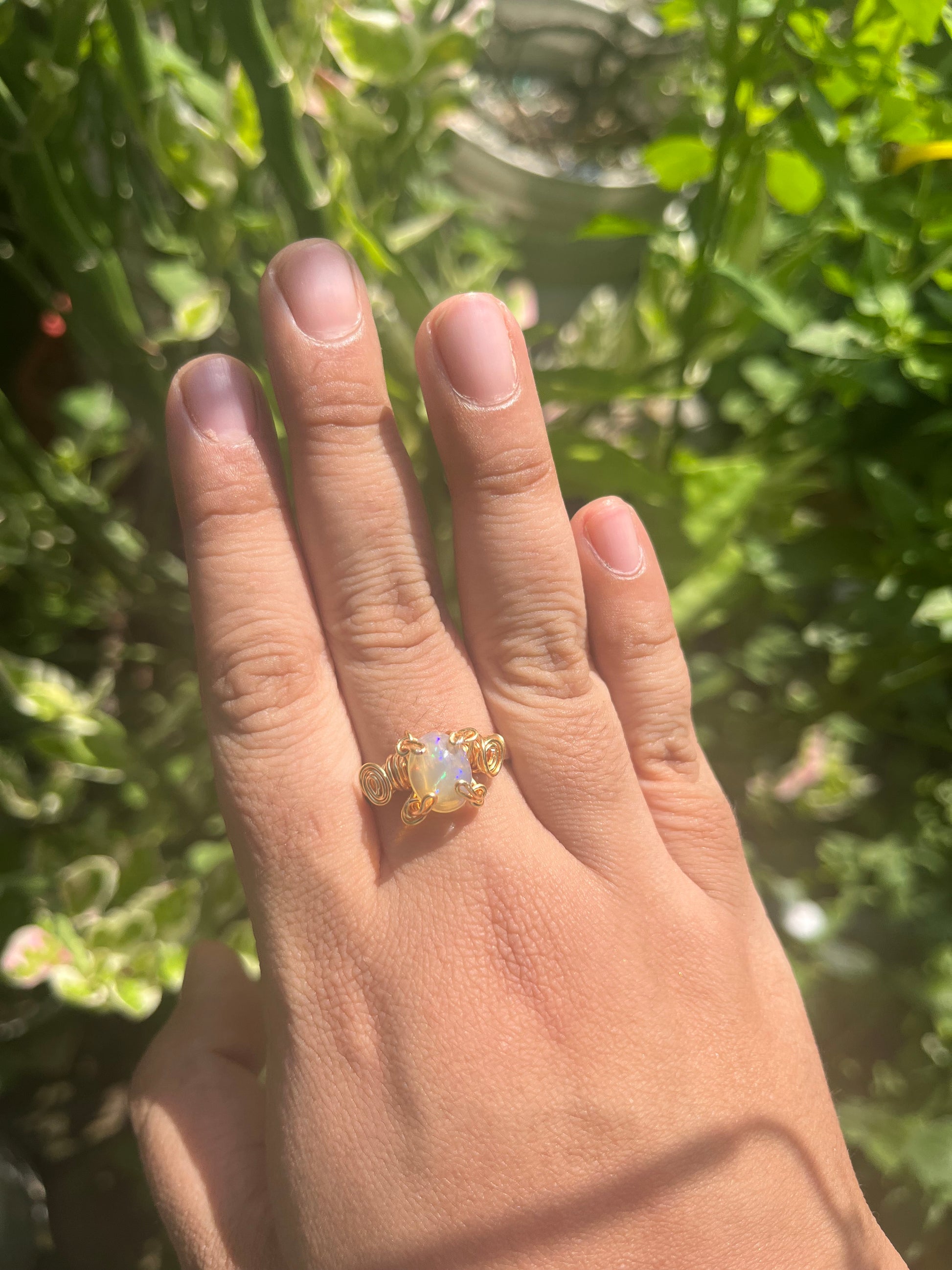 Anillos ajustables elaborados con la técnica de alambrismo y material de chapa de oro de 18k. Cada anillo es único.