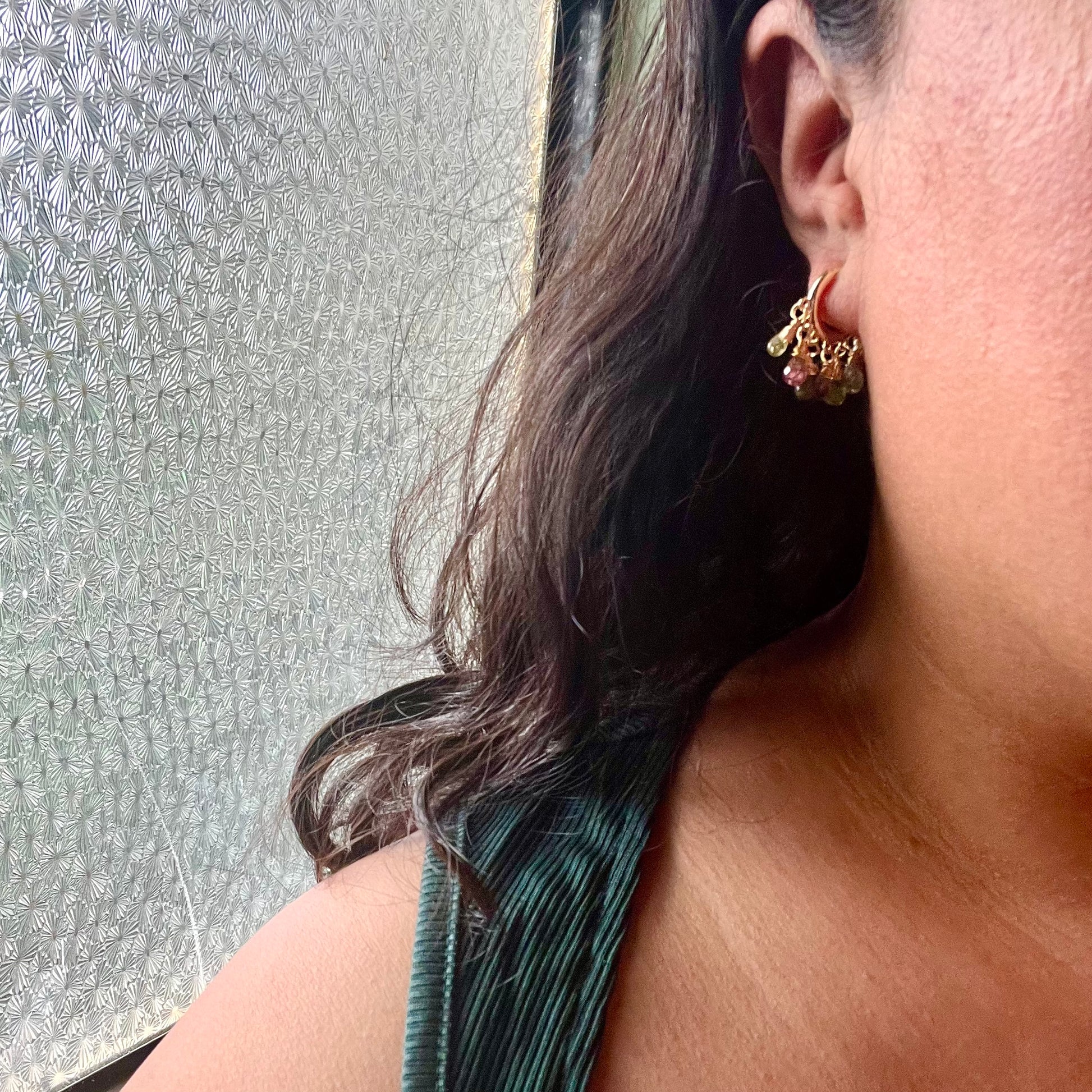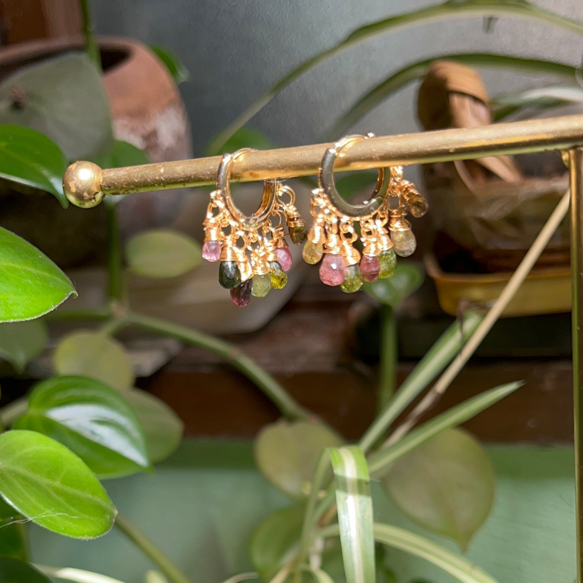 Aretes con gotas de turmalina de 4mm, hechos con materiales de chapa de oro de 18k