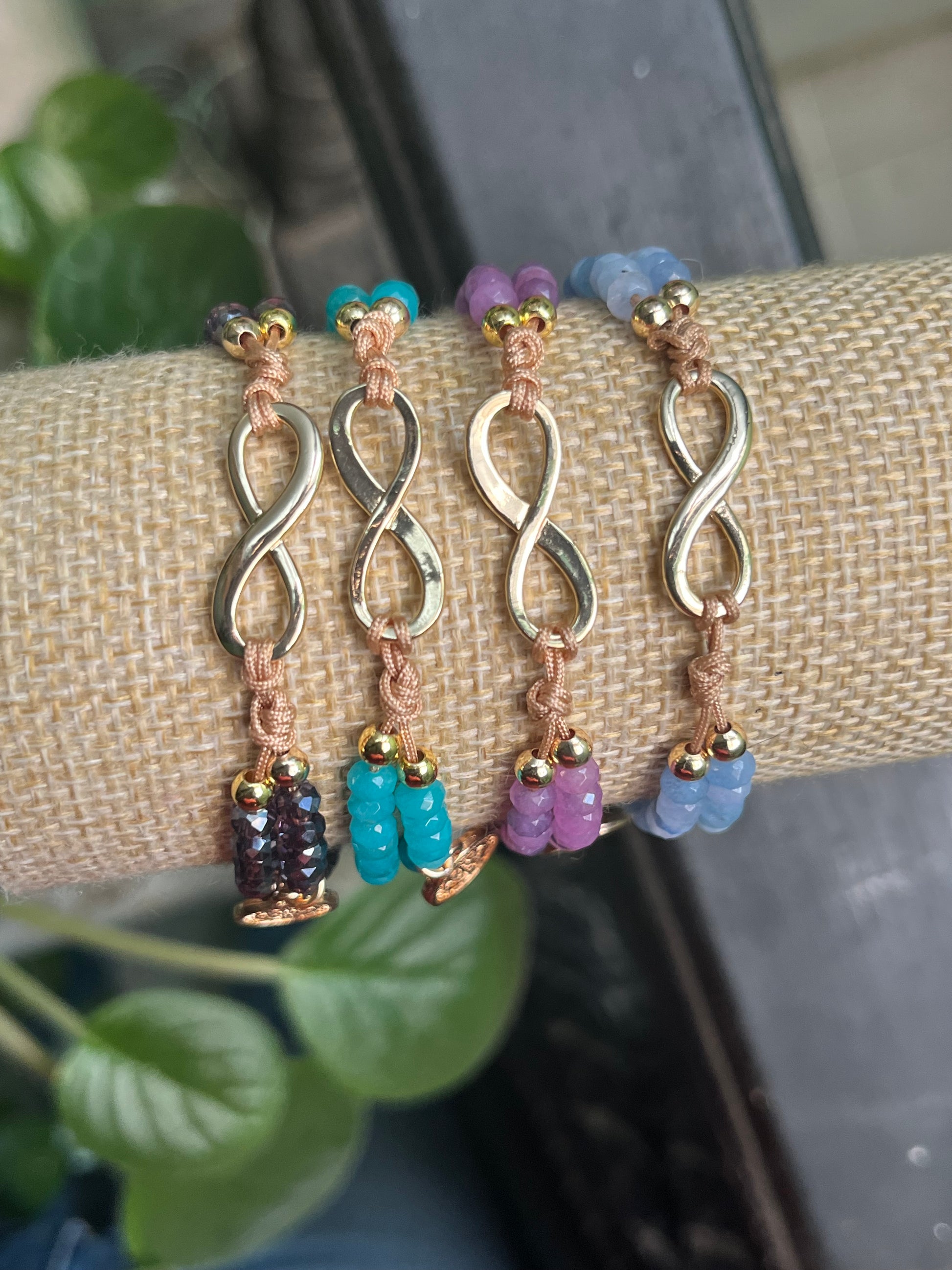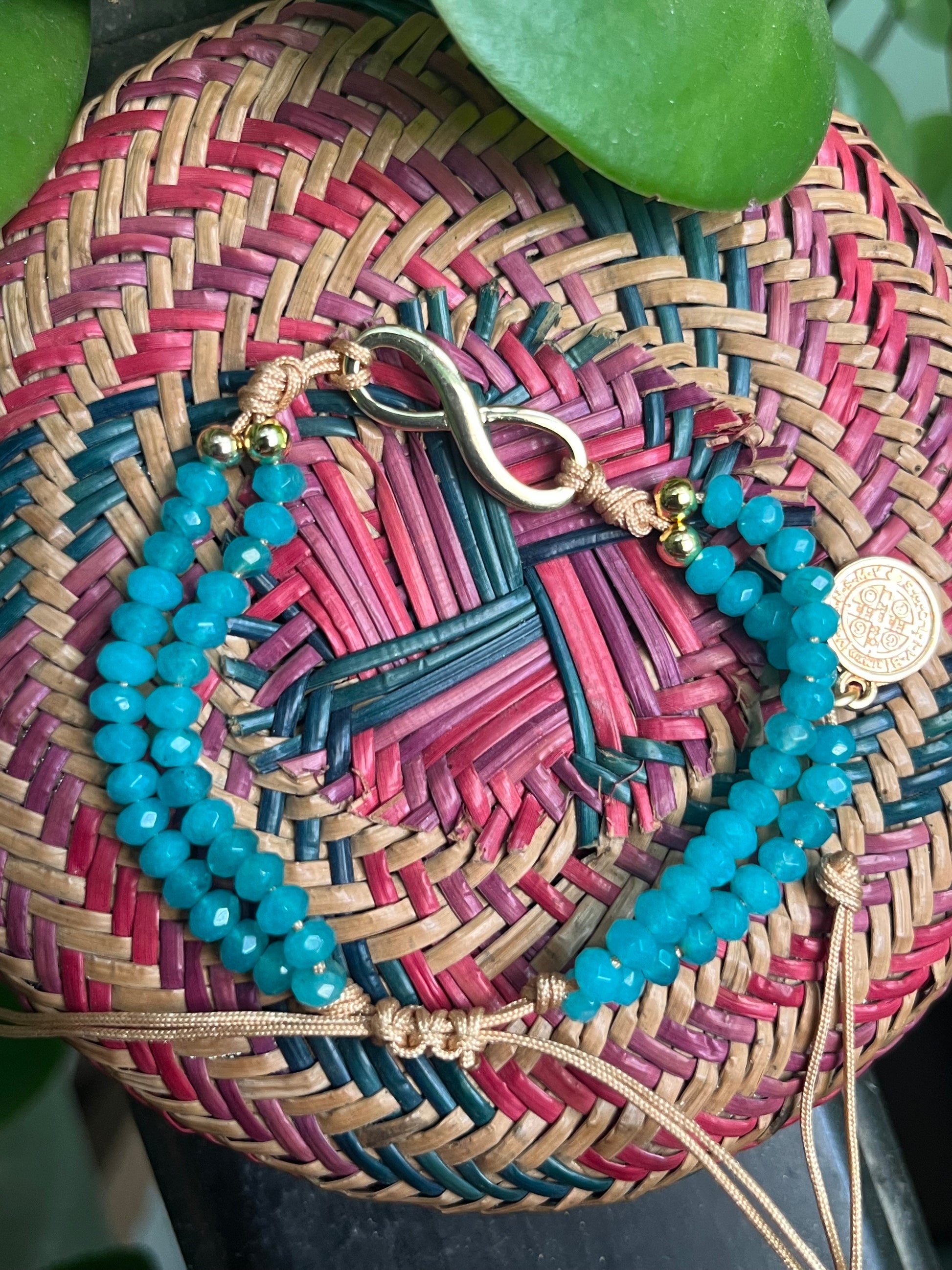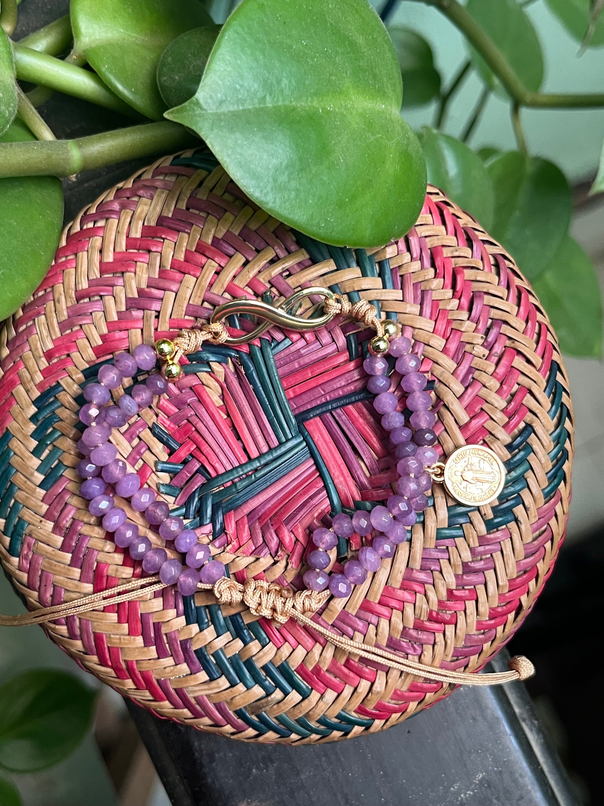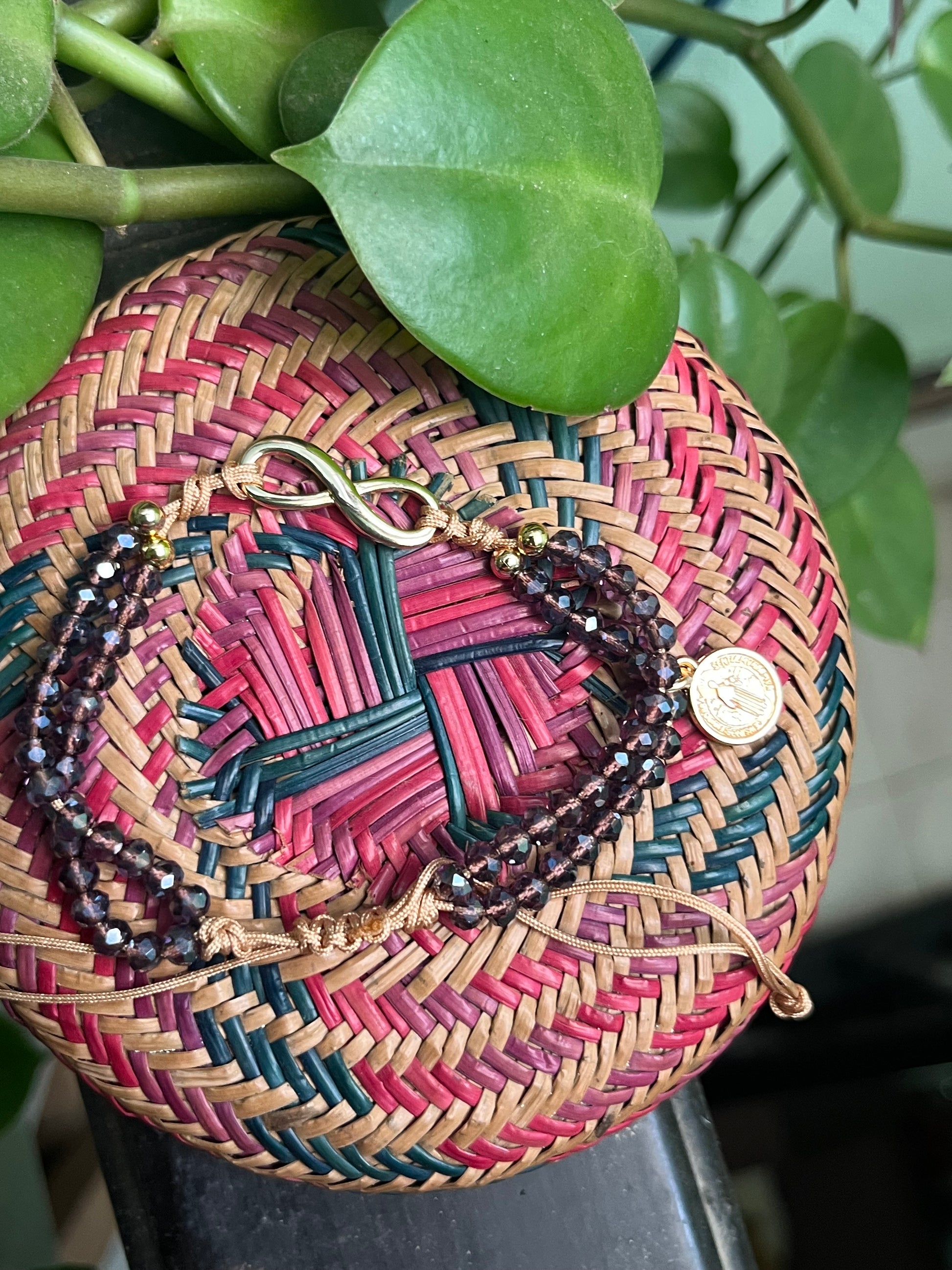 Brazaletes ajustables tejidos con hilo y cuentas de jade o cristales a elegir y medalla de San Benito