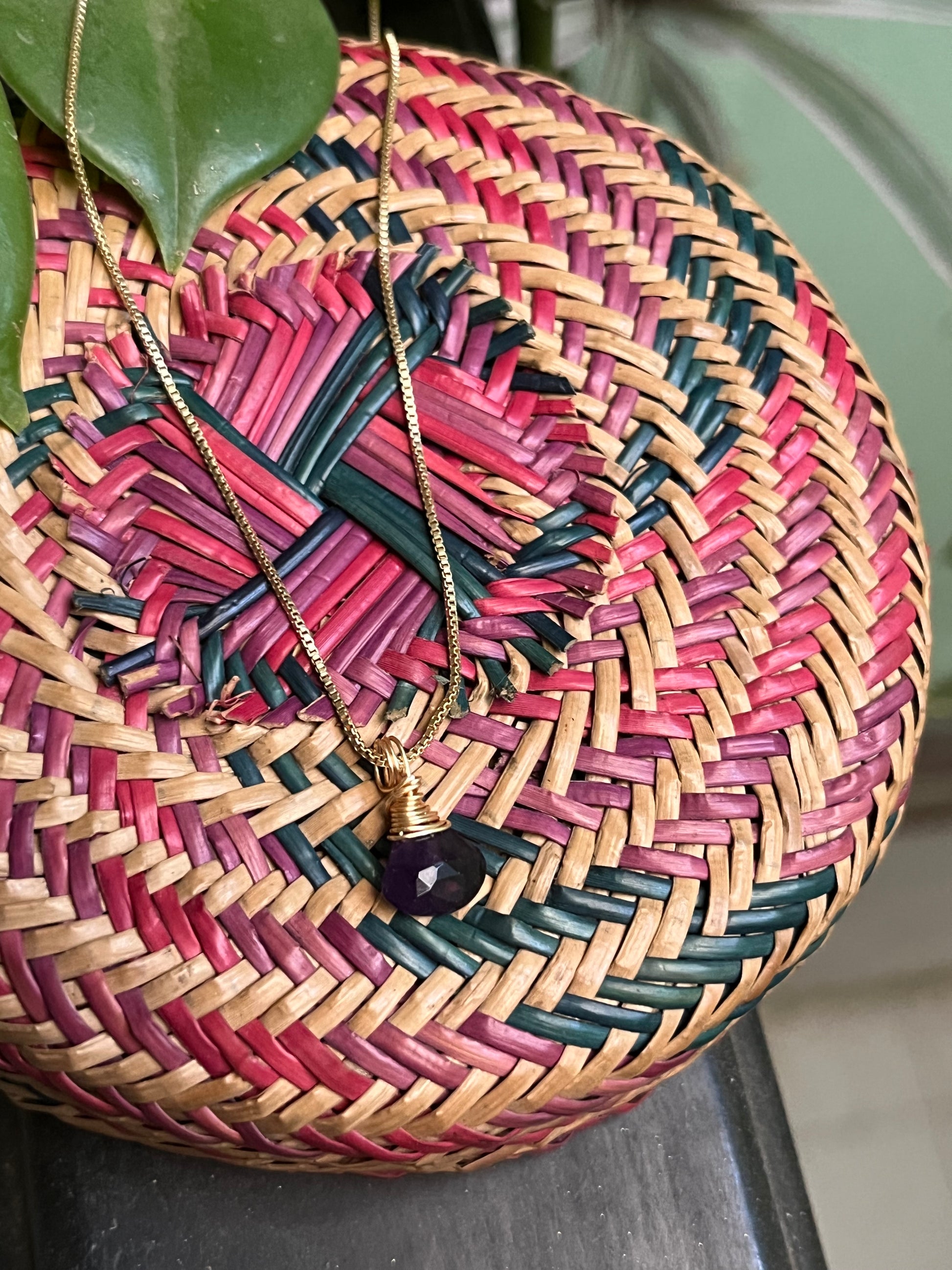 Collar de 50 cm de chapa de oro de 18k con dije de mini gota de amatista.