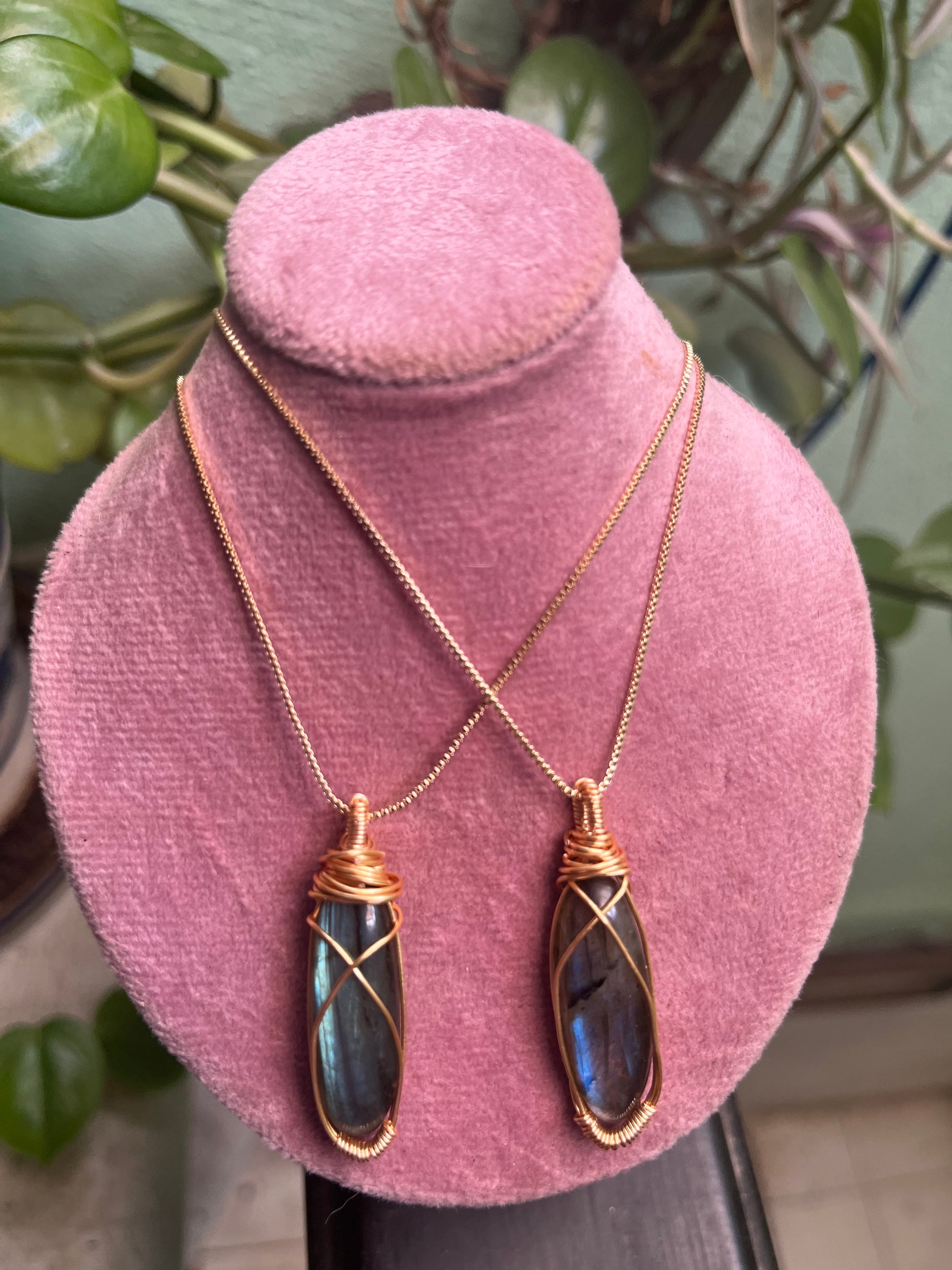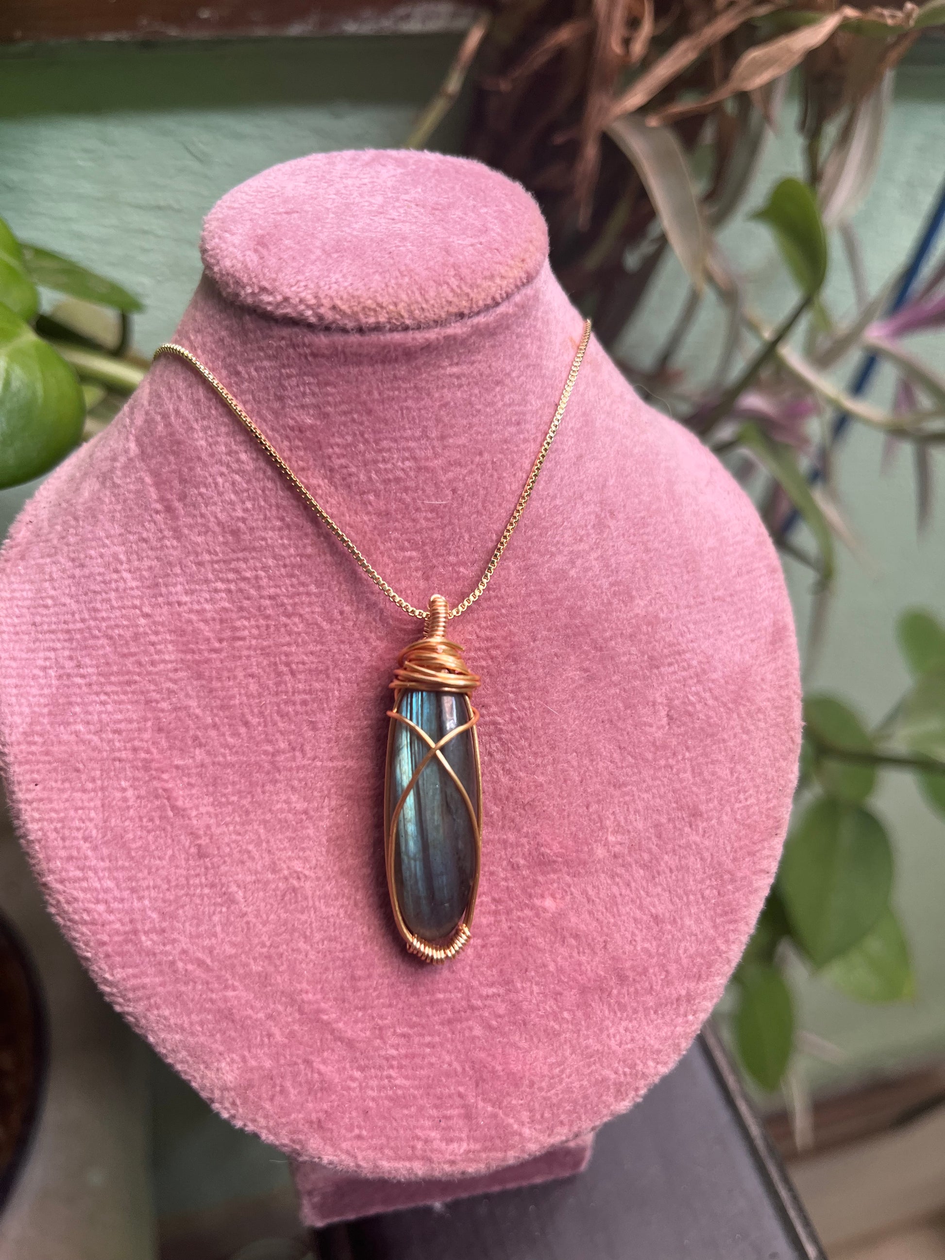 Collar de 50 cm de chapa de oro de 18 k con dije que diseñado a mano con alambre chapado en oro de 18 k.