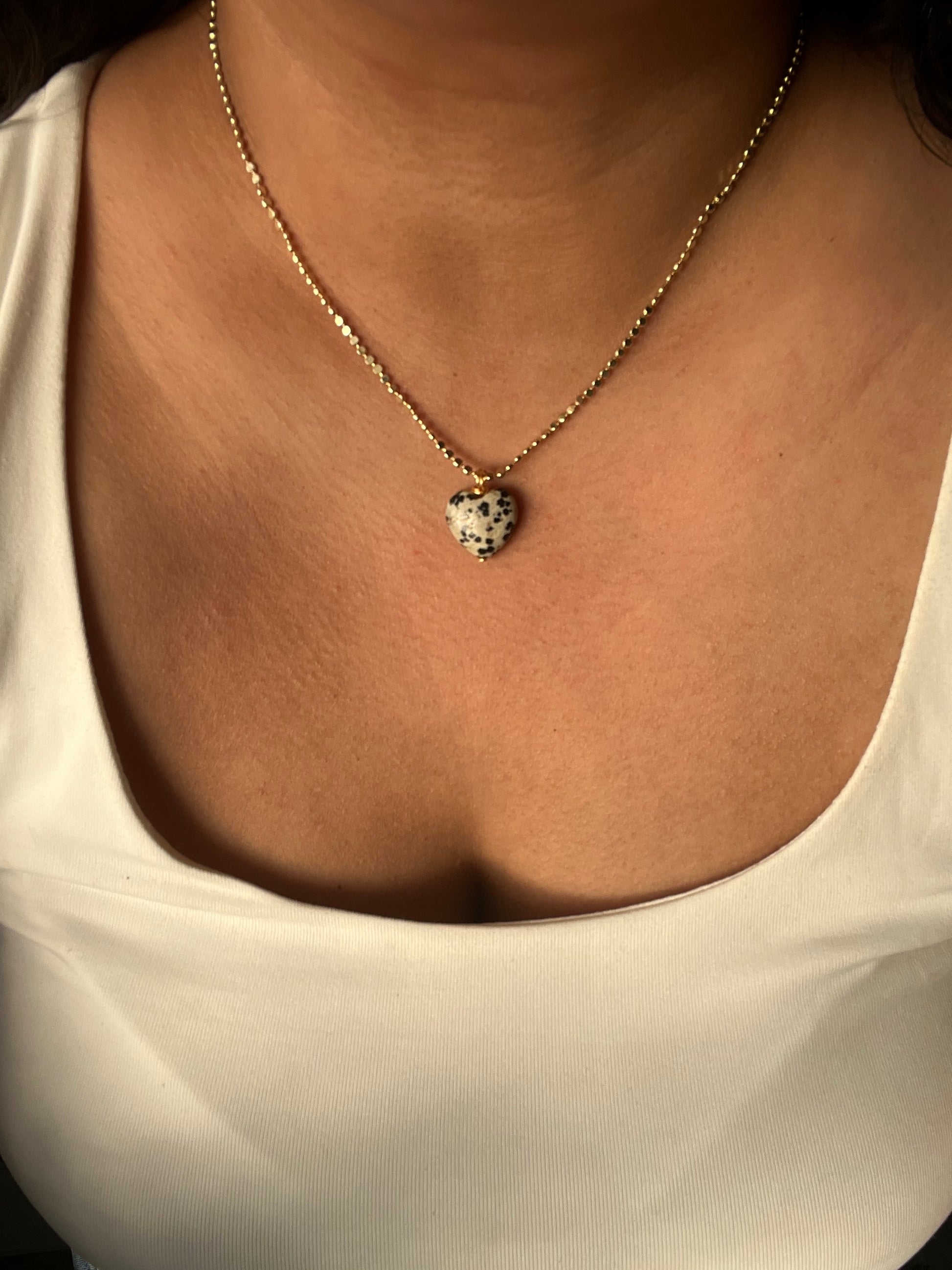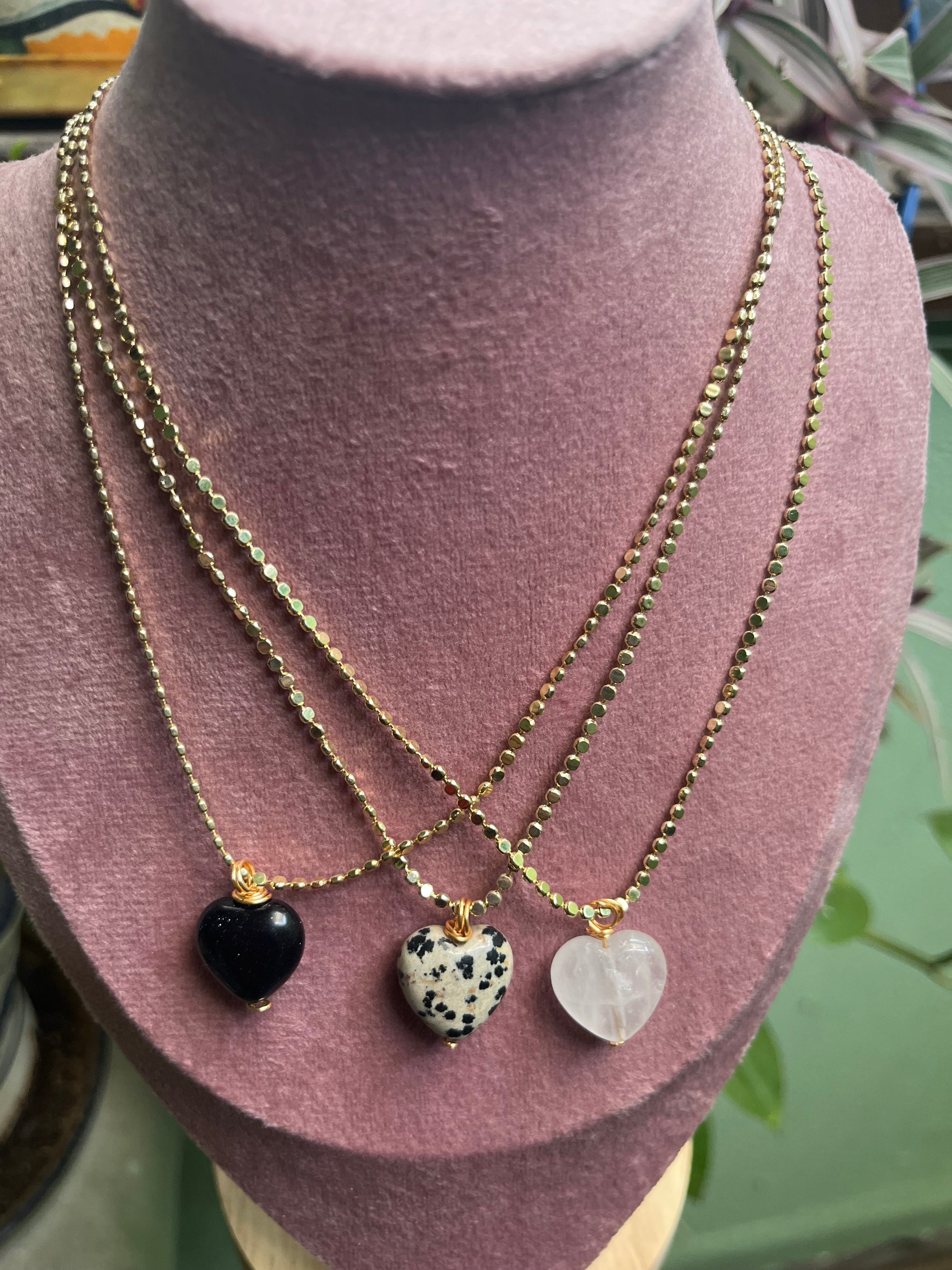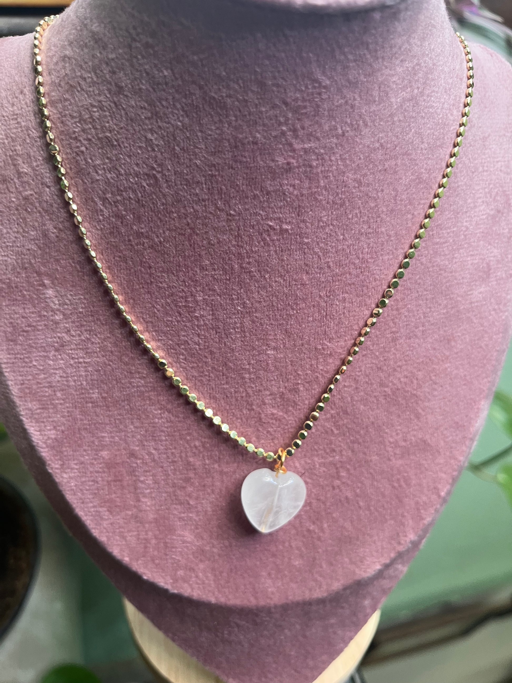 Cadena de 43 cm y extensor de 4 cm chapada en oro de 18k con colgante de corazón de cuarzo a elegir.