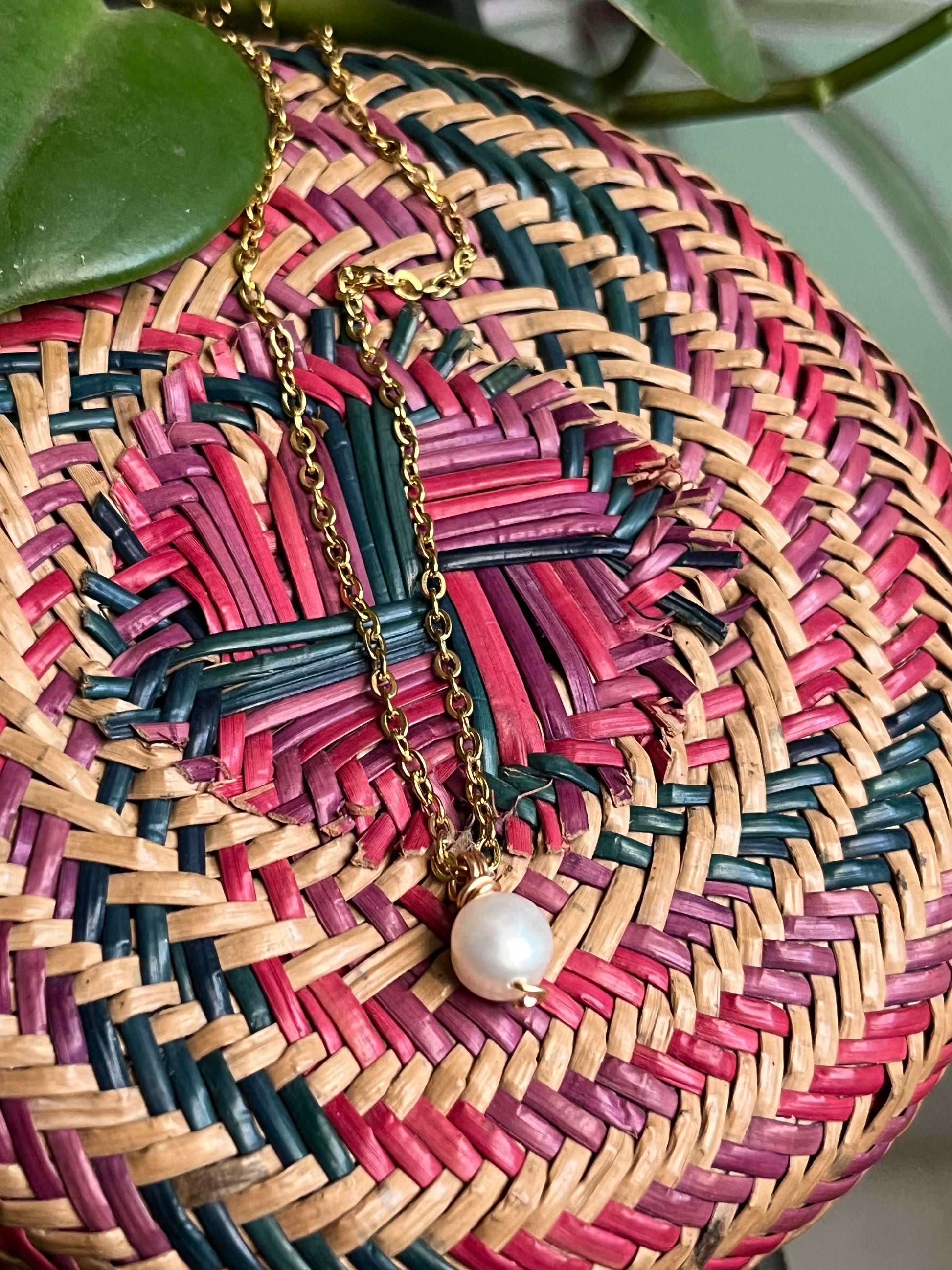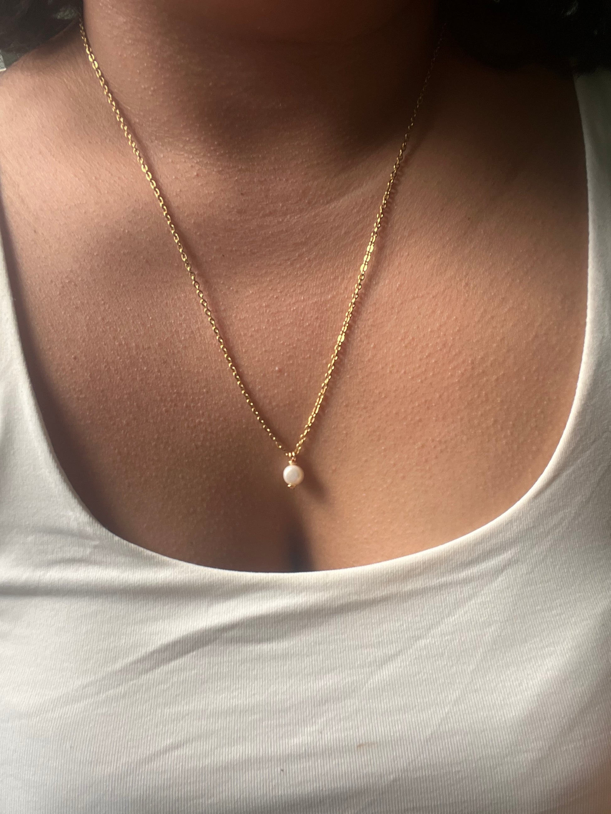 Collar de acero inoxidable de 50 cm con extensor de 4 cm y perla de río de 6mm.