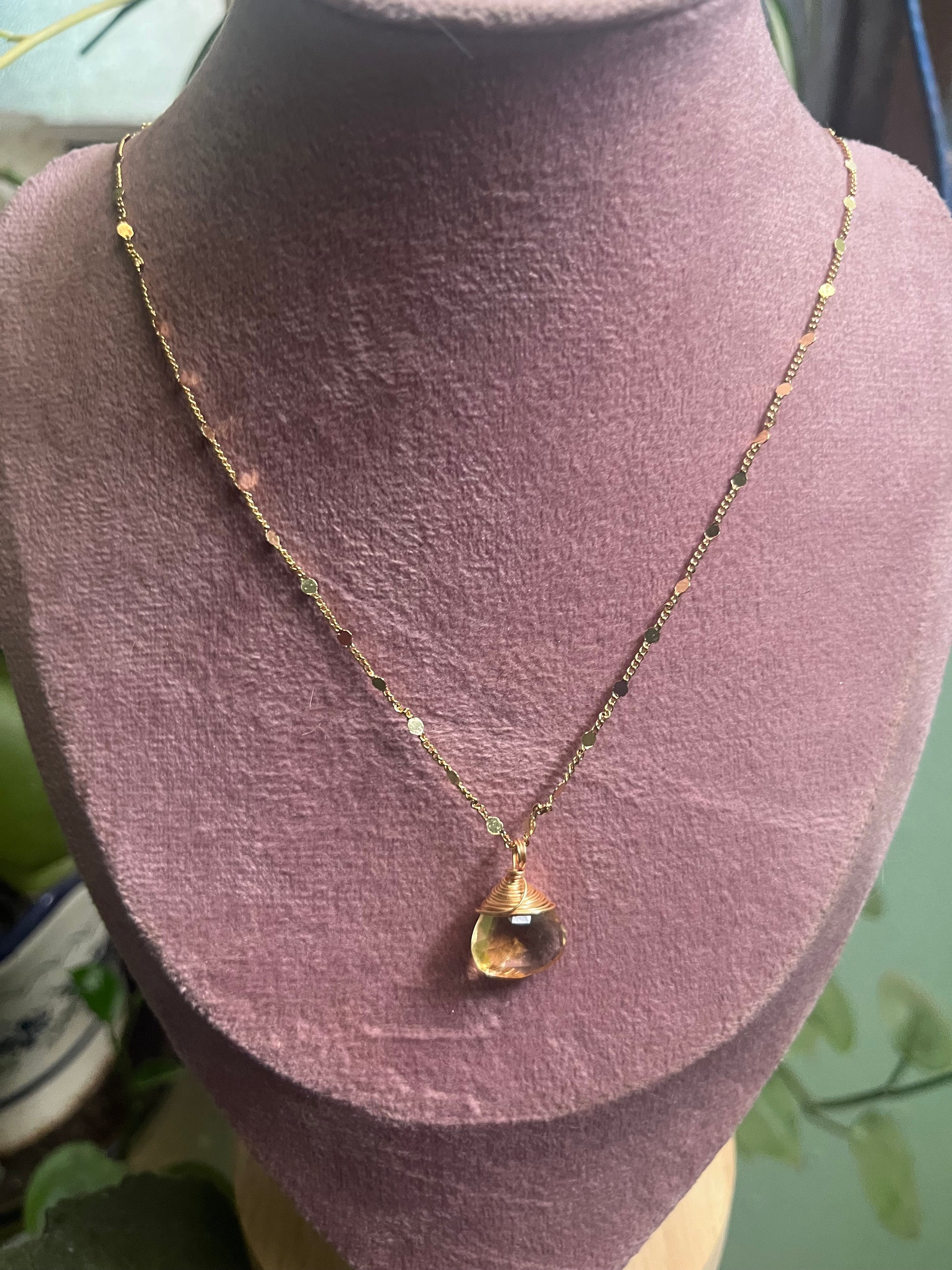 Collar de 50 cm con cadena de chapa de oro de 18k y colgante de citrino en forma de gota de 11.5 mm de ancho.