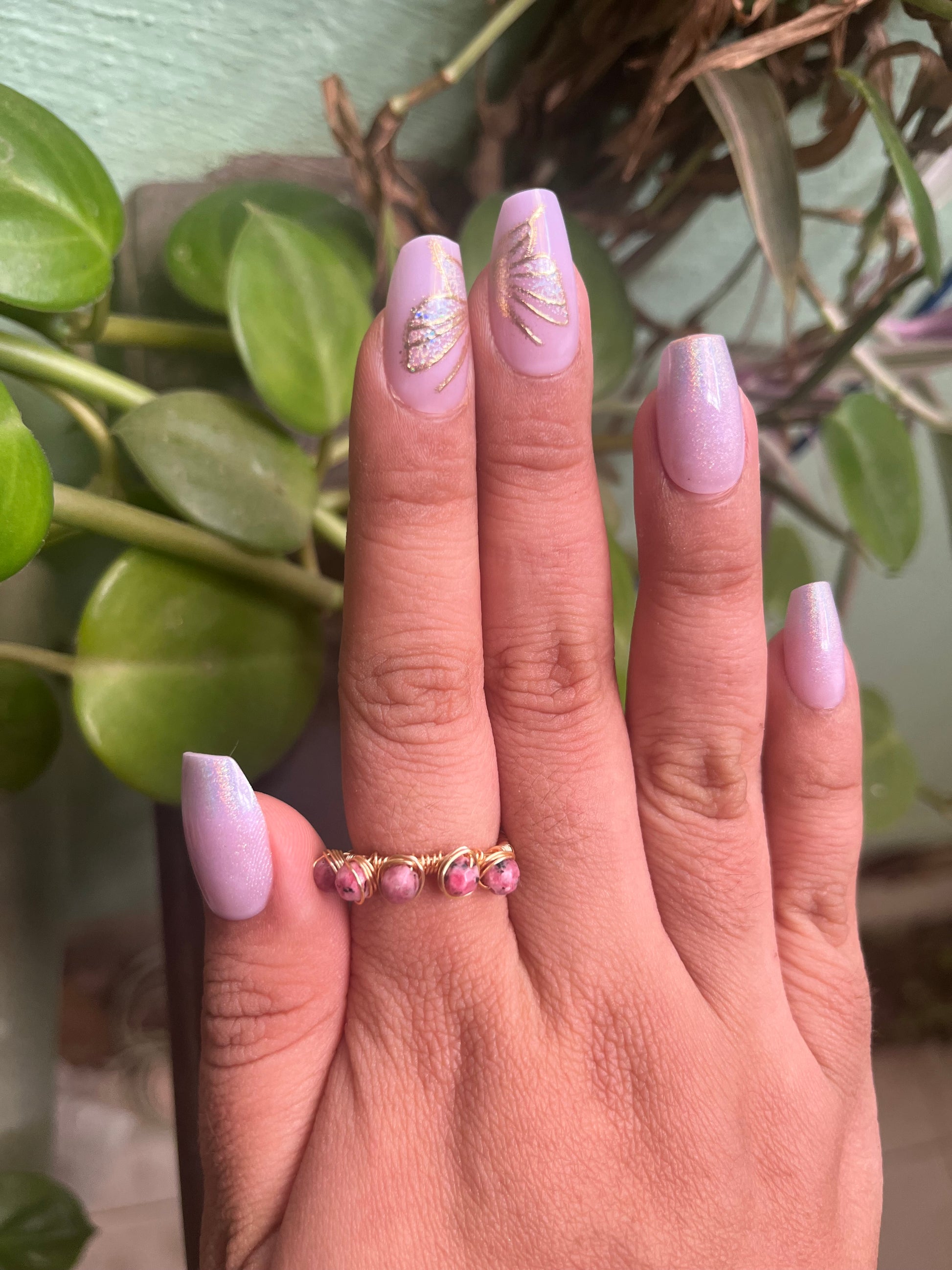 Anillo ajustable hecho completamente a mano a modo de churumbela con cuentas de cuarzo a elegir.